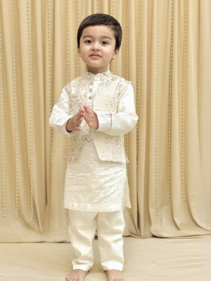 White Multicolor Embroidered Kurta Pyjama Set for Boys
