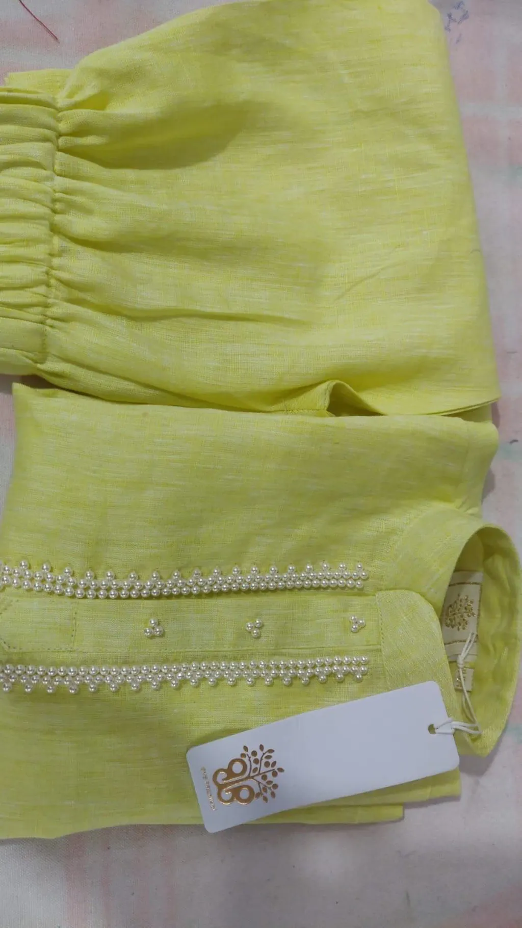 Lime Yellow Pure Linen Short Kurta Pajama Set for Babies