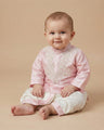Baby Pink Raw Silk Kurta Dhoti Set for Boys with Pearl Embroidery