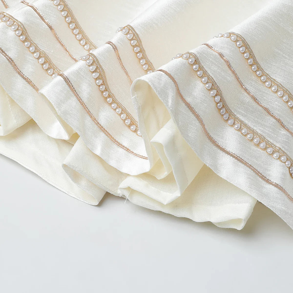 This charming baby pink and white dress for girls comes with a beautifully embroidered jacket, adorned with delicate pearl handwork and soft floral motifs. Made from raw silk and organza, it feels as light as it looks, letting your little girl move around freely while looking like an absolute doll. A breezy blend of comfort and traditional elegance.