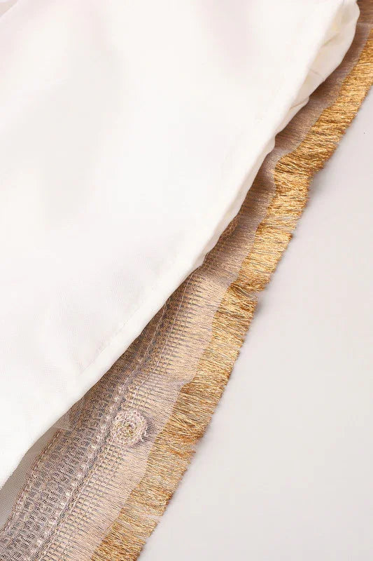 Girls White & Gold Sequin Lehenga Set with Red Dupatta
