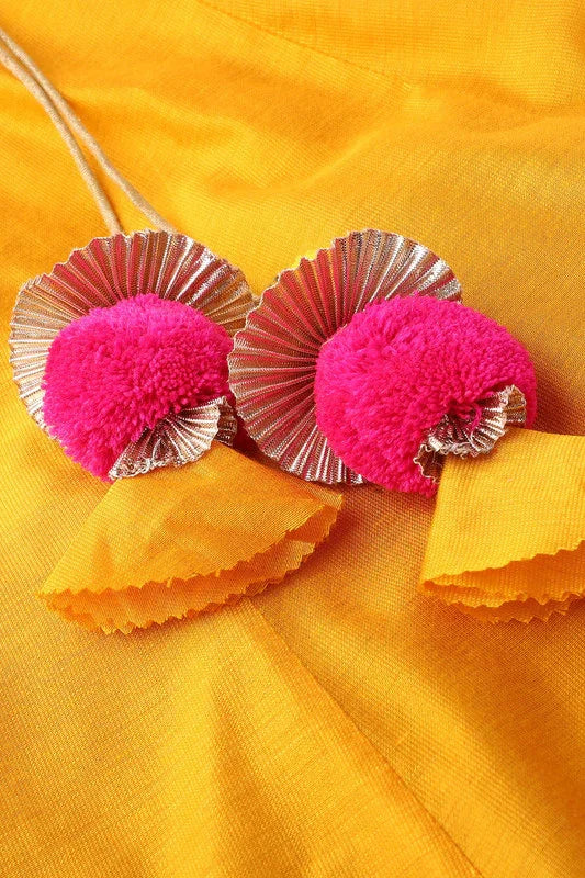 Girls Fuchsia & Yellow Chanderi Silk Lehenga Set with Mirror Work & Dupatta