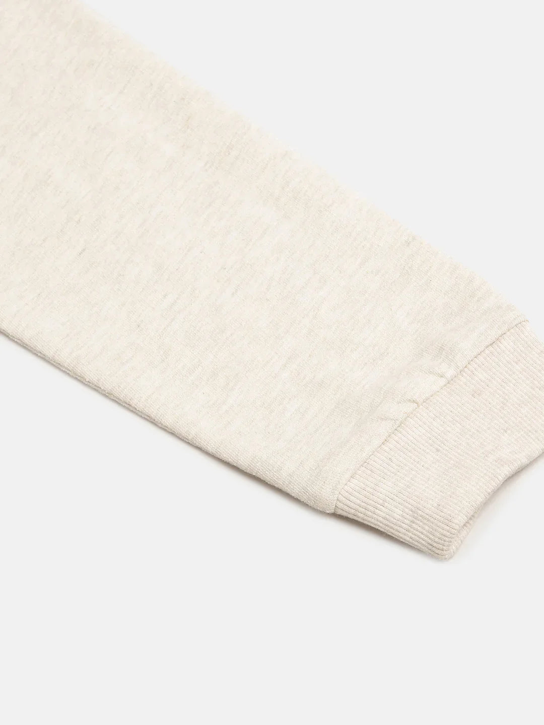 Ecru melange kids sweatshirt with sequin-embellished logo. This luxe-sports inspired lounge sweat tee is essential during travel. Designed from a soft and premium cotton blend fabric which makes it comfortable to wear in any season. Features a comfortable hood and ribbed cuffs for a perfect fit.
