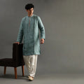 Sage Green Linen Kurta Pyjama Set with Hand Embroidery